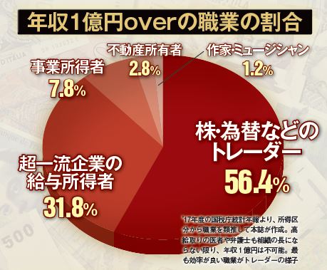 1位が断トツでトレーダーなのは周知の事実ですが、2位が超一流企業の給与所得者となっています。