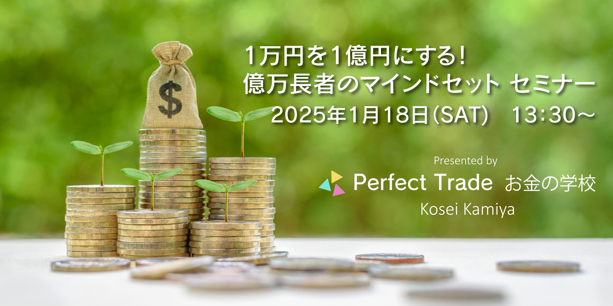 本セミナーでは、1万円という小さな資金を、複利の力と正しいマインドセットで1億円に成長させる考え方 を現役億トレーダーの神谷光星氏がお伝えします。